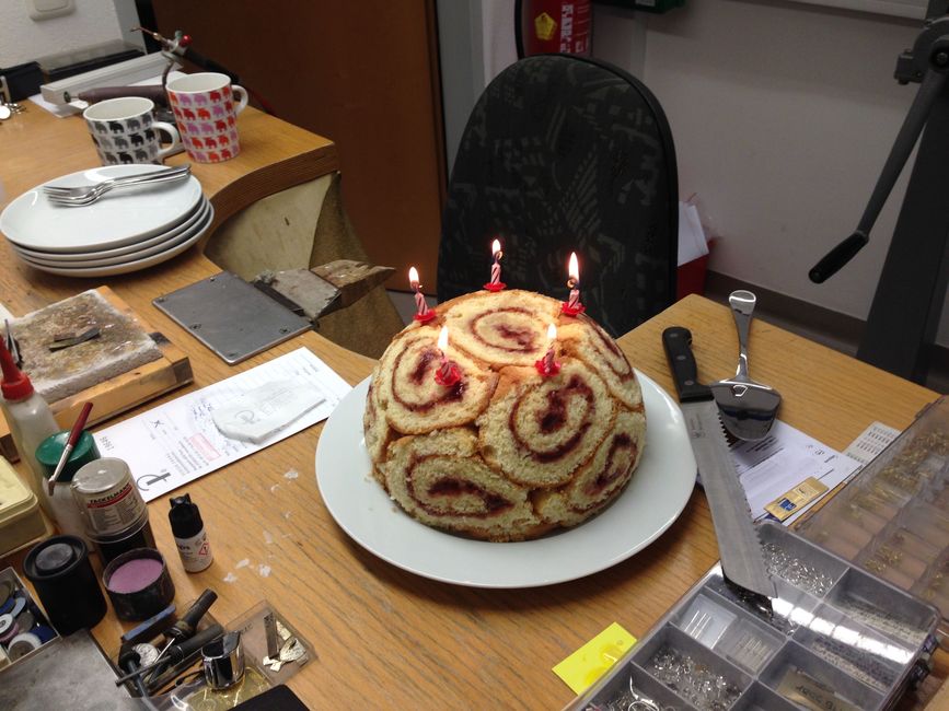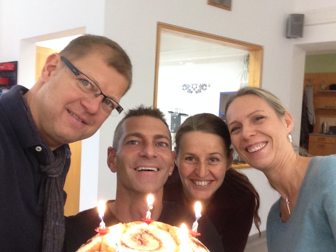 Die ersten Gratulanten stellten sich schon mit einer Kalorienbombe ein,